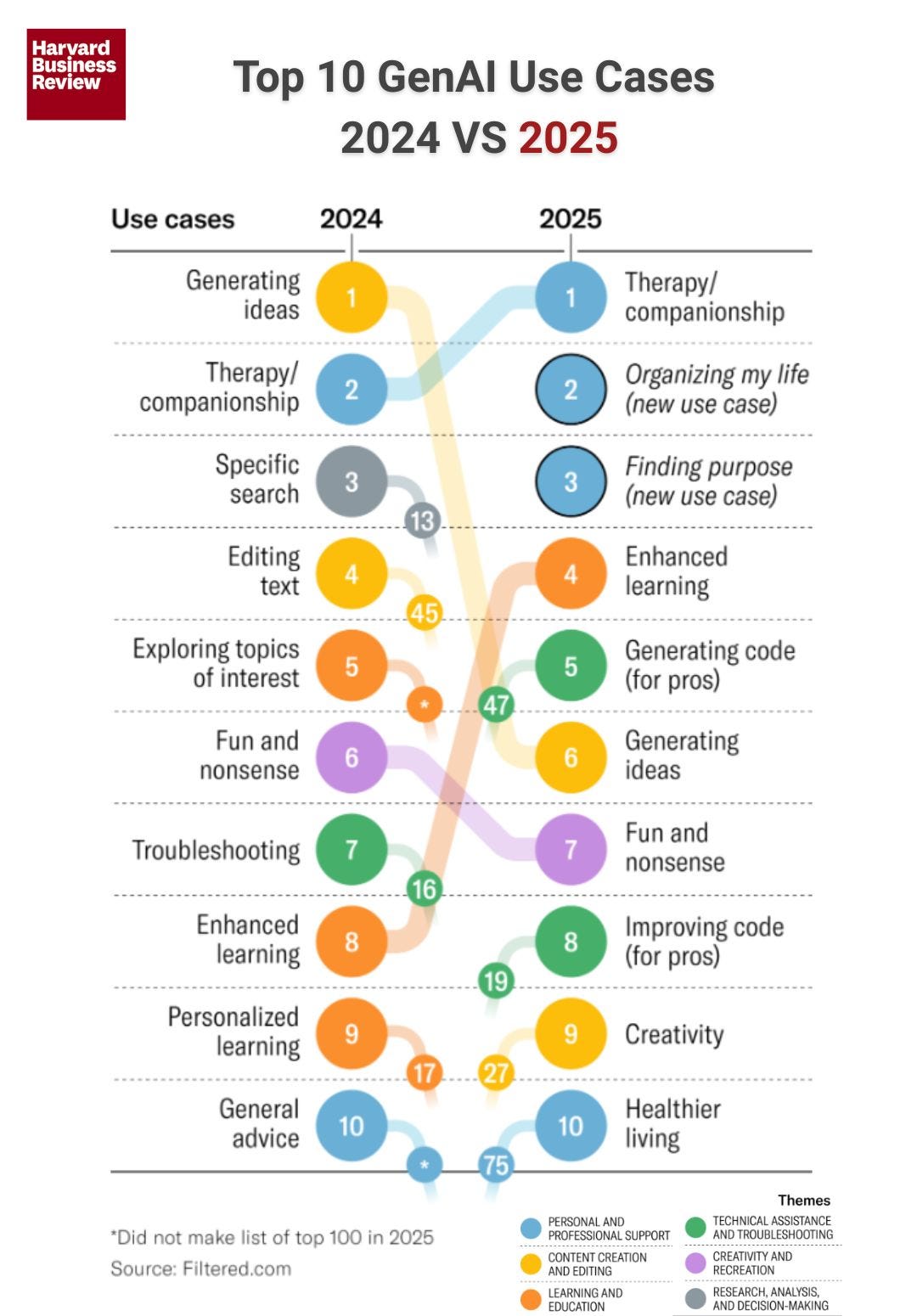 La fonte dei dati analizzati sono gli utenti dei forum su Reddit, e quindi credo principalmente cittadini americani. Il grafico suggerisce la crescita dell'utilizzo dei ChatBot per il supporto emotivo, soprattutto perchè non ci si sente giudicati dallo strumento.