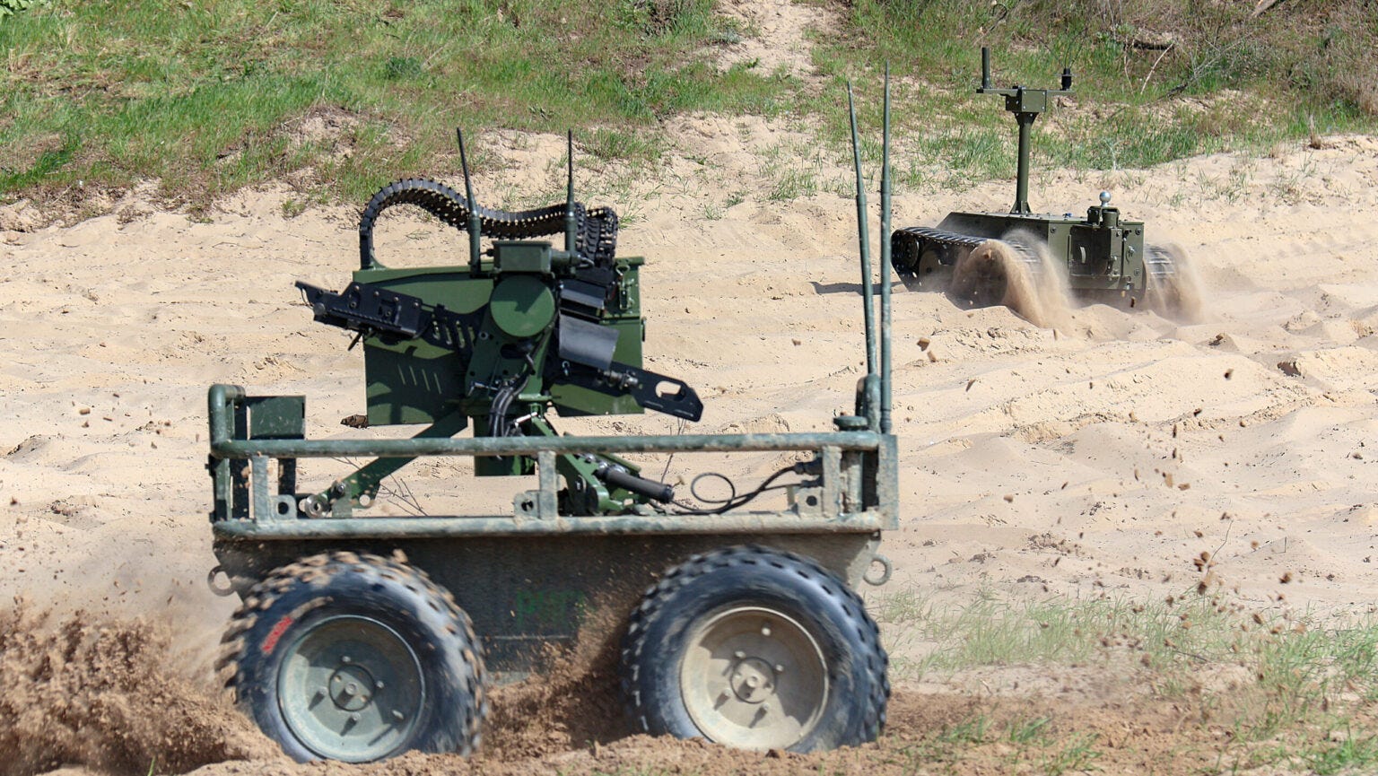 Droni terrestri UGV (Unmanned Ground Vehicles) per svolgere compiti come ricognizione, sorveglianza, rimozione di mine e fuoco diretto