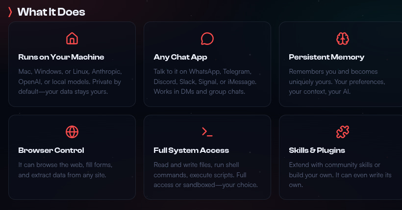 Come funziona OpenClaw. Alla base c’è il concetto di assistente IA che risiede sul proprio dispositivo e automatizza compiti reali, accedendo ai dati, cartelle e file.